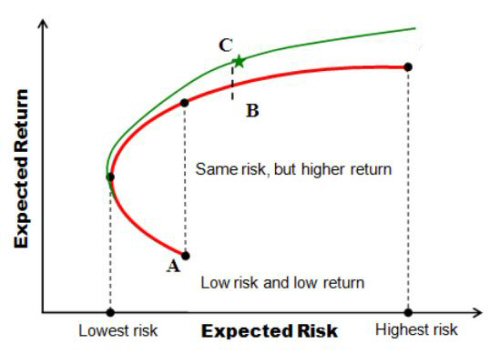 Lonagan grins. “So he takes this course at duh University of Chicago in modern portfolio theory. He learns duh same stuff we all learn in that line o’ work—stuff outsiders don’t know about. Basically, it’s as simple as this: If you add a few non-correlated assets like real estate or commodities to a portfolio o’ stocks ‘n’ bonds, you make out real good. You increase return ‘n’ lower duh risk! That is, if you do it right. They plot it on a fancy curve called the ‘Efficient Frontier.’ But Ray goes at it a different way. Uses modern portfolio theory by investing in startups. And he builds a substantial business that way.
