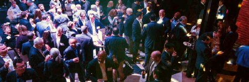 I snag myself a snack from a passing tray and ask Quashe׳, “What’s with all these booths scattered around the place—all them people waitin’ in line?”